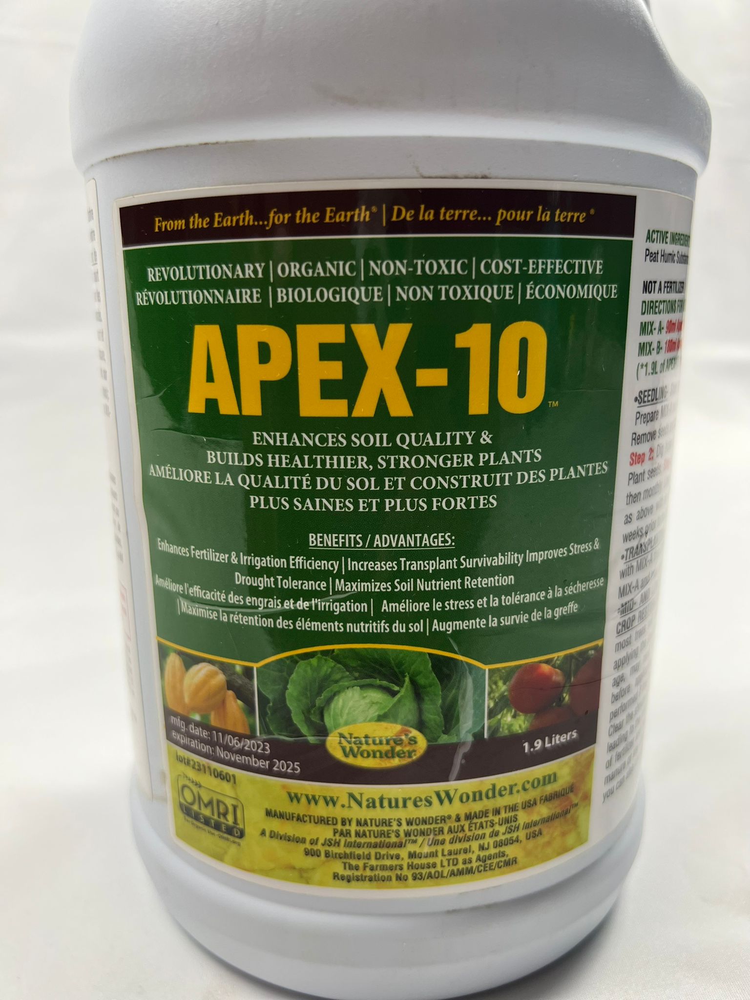 Welcome to The Farmers House LTD! We proudly represent Natures Wonder® APEX-10™ from JSH International. APEX-10 is an all-natural biostimulant designed to enhance plant growth and health across a variety of crops. Here’s how to apply APEX-10 to your plants for maximum yield and quality.